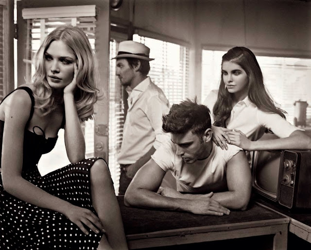 Shaugnessy Brown play the love interests in this 50s inspired shoot that harkens the greaser style made famous by